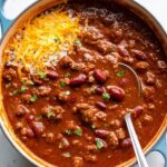 - Top your chili with sour cream, cilantro, green onions, shredded cheese, diced avocado, and lime wedges for extra flavor and texture.