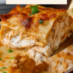 This Buffalo Chicken Lasagna combines crispy breaded chicken strips with spicy buffalo sauce, creamy ricotta filling, and a rich béchamel cheese sauce for a unique twist on traditional lasagna. It's baked to golden perfection and topped with fresh green onions for added freshness and crunch.
