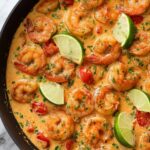 This Cajun Shrimp recipe features perfectly cooked shrimp seasoned with Cajun spices and tossed with sautéed red bell peppers in a creamy, flavorful sauce made from butter, garlic, chicken broth, heavy cream, cheese, and a hint of heat from hot sauce and diced tomatoes with green chilies. Served with optional lime wedges and fresh cilantro, it pairs wonderfully with rice, beans, or salad for a satisfying meal.