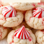 - Add Kisses: Allow cookies to cool for 5 minutes after baking, then gently press an unwrapped Hershey’s Candy Cane Kiss in the center of each cookie to create the classic festive look.