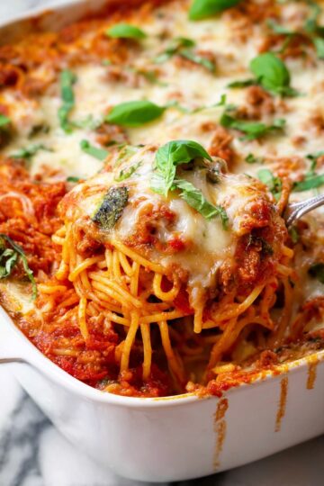 Baked Spaghetti with Cheese and Tomato Sauce Recipe