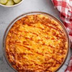 - Pour Batter and Bake: Pour the bisquick batter slowly over the beef and cheese layers, ensuring the surface is fully covered. Transfer the pie dish to the oven and bake for 25 minutes or until the top is golden brown and set. A knife inserted into the center should come out clean.