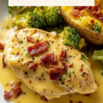 - Serve: Garnish with crumbled cooked bacon if desired and serve with baked potatoes or your favorite side. Enjoy this creamy, cheesy chicken dish warm.