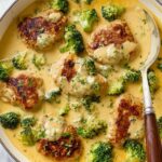 Cheese Chicken is a creamy, flavorful dish featuring tender chicken breasts coated in a Parmesan-flour crust, sautéed to golden perfection, then smothered in a rich cheese sauce with broccoli. This comforting meal is perfect for a satisfying dinner, served alongside baked potatoes and optional crispy bacon for added texture and taste.