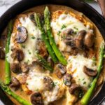 - Combine and Heat Through: Return chicken to the skillet and spoon sauce over it. Arrange asparagus on top, then sprinkle with shredded mozzarella. Cover and cook over medium-low heat for 5 minutes until cheese is melted. Alternatively, transfer skillet to a 400° F oven and bake for 4 minutes to melt cheese.