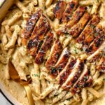 To reheat, warm on the stove over low heat with a splash of chicken broth or water stirred in to bring back creaminess. Microwave works in a pinch but be cautious to heat in short bursts and stir often to keep sauce smooth.