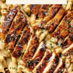 A creamy and flavorful Chicken Garlic Parmesan Pasta combining tender chicken breast fillets with a rich Parmesan cheese sauce, sautéed shallots, and garlic, served over al dente penne pasta and garnished with fresh parsley and a splash of lemon juice for zest.