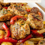 This recipe freezes beautifully, especially without the potatoes—those tend to get a bit mushy when frozen. I usually freeze the chicken, sausage, and sauce in a freezer-safe container, label it, and use within 2 months.