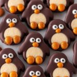 Peanut Butter Penguins are adorable, festive treats made with Nutter Butter cookies dipped in a rich blend of dark chocolate, peanut butter, and butter, then decorated with mini Nilla wafers, Reese’s pieces, and candy eyes to resemble cute penguins. Perfect for holiday parties or fun snacks, these no-bake treats are easy to make and sure to delight kids and adults alike.