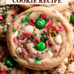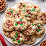 - Loaded with festive mix-ins: Red and green M&M’s, white chocolate, pretzels, and even potato chips give these cookies a crunchy, sweet-salty twist.