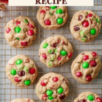 During holiday parties, I love arranging these cookies on a tiered platter alongside some peppermint sticks and small bowls of extra M&Ms for guests to decorate their own cookies. It’s always a hit and adds a fun interactive element to the table.