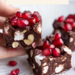 This festive Christmas Rocky Road recipe combines rich semi-sweet chocolate, creamy almond butter, crunchy roasted almonds, tart dried cranberries, soft mini marshmallows, and juicy pomegranate seeds, all infused with warm holiday spices. Perfect for holiday gatherings or gifting, it’s a no-bake treat that’s easy to prepare and delightful to enjoy.