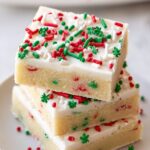 These festive Christmas Sugar Cookie Bars combine a soft, creamy sugar cookie base with a rich, fluffy frosting topped with colorful holiday sprinkles. Perfect for holiday gatherings, these bars offer the classic flavors of sugar cookies in an easy-to-cut bar form.