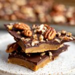 - Add Nuts or Candy: While the chocolate is still soft, sprinkle the chopped toasted pecans, M&M's, or your chosen topping evenly over the chocolate layer for added texture and flavor.