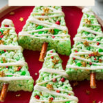 Delightfully festive and fun, these Christmas Tree Rice Krispie Treats are a perfect sweet snack for the holiday season. Made with classic marshmallow and cereal, then shaped into charming trees decorated with melted white chocolate, pretzel sticks, and colorful sprinkles, they’re easy to make and sure to bring cheer to any celebration.