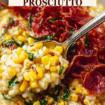 - Serve: Plate the risotto and garnish with crispy prosciutto, additional corn kernels, chopped chives or basil, and extra Parmesan cheese. Serve immediately and enjoy!