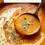 Reheat gently on the stove over low-medium heat, stirring occasionally so it warms evenly and doesn’t scorch. If the soup has thickened in the fridge, add a splash of water or cream while reheating to bring back that perfect silky texture.