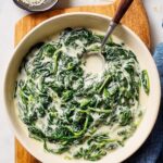 A rich and creamy side dish featuring tender spinach cooked in a buttery, garlicky cream sauce with Parmesan cheese and a hint of lemon for brightness.