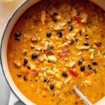 This creamy chicken enchilada soup combines tender chicken, fire-roasted tomatoes, beans, corn, and a blend of flavorful spices, finished with smooth cream cheese for a rich, comforting dish perfect for any meal.