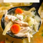 Reheat gently on the stove over low heat, stirring occasionally. If the soup feels thick, add a bit of broth or water. If frozen without noodles, add fresh noodles during reheating and cook until tender. Avoid microwaving for best texture, but it works well if you’re in a hurry.