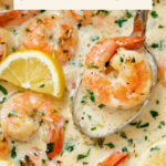 This Creamy Garlic Shrimp recipe features succulent large shrimp cooked in a rich and velvety sauce made with garlic, dry white wine, chicken broth, heavy cream, Parmesan cheese, and fresh lemon juice. It's an elegant and flavorful dish perfect for a quick dinner or special occasion, pairing beautifully with pasta, rice, or roasted vegetables.