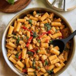 - Toss Pasta with Sauce: Add the cooked rigatoni to the pan and toss everything together until the pasta is evenly coated with the creamy tomato pesto sauce. If needed, add reserved pasta water a little at a time to loosen the sauce.
