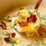 - Serve: Ladle soup into bowls and garnish with reserved cooked bacon, shredded cheese, and sliced green onions. Serve warm.
