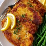 These breaded pork chops baked on a sheet pan are crispy, flavorful, and easy to prepare. Coated with a seasoned breadcrumb and Parmesan mixture, and baked until golden, they make a perfect weeknight dinner served with fresh lemon wedges for a bright finish.