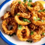 - Serve: Transfer the fried calamari to a serving plate and finish with a squeeze of fresh lemon juice. Optionally serve with marinara or tzatziki sauce.
