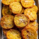 You’ll love this Fried Green Tomatoes recipe that’s golden and crispy on the outside yet juicy and tender on the inside. These tomatoes can be served up as a comforting appetizer, snack, or swapped in a classic BLT sandwich. A cozy staple of the South.