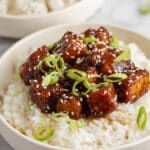 - Serve: Serve the crispy orange tofu over cooked Jasmine rice, garnished with sliced green onions and toasted sesame seeds, if desired. Enjoy!