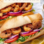 This classic Louisiana shrimp po' boy recipe features crispy, golden fried shrimp nestled in a light and pillowy French bread roll, dressed with tangy remoulade sauce, pickles, lettuce, tomatoes, and onions. A deliciously iconic American sandwich bursting with bold Cajun flavors in every bite.