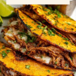 The key is to dip each tortilla briefly into the birria consomé and immediately fry it in hot oil. Make sure the skillet is at the right temperature and press the taco while cooking. This seals the edges and creates the crispy exterior everyone loves.