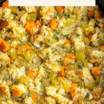 Slice your chicken how you like it—breasts, thighs, or whole pieces—and serve alongside the stuffing. Or, place the chicken back in the slow cooker on top of the stuffing for a handsome family-style presentation. Either way, you’re in for a delicious, comforting meal!