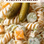 I don’t recommend freezing this salad since the creamy dressing and pickles don’t freeze well; they tend to separate or become watery when thawed. It’s best enjoyed fresh or refrigerated.
