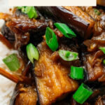 A flavorful and melty eggplant stew featuring roasted eggplants simmered with garlic, shallots, green onions, soy sauce, and a touch of sweetness. Perfect as a comforting side or main dish served with rice, quinoa, or pasta.