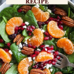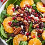 A festive and refreshing Christmas Salad featuring baby spinach, toasted pecans, dried cranberries, mandarin oranges, goat cheese, and pomegranate arils, dressed with a tangy honey Dijon lime dressing. Perfect as a vibrant side or light meal during the holiday season.