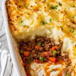 This easy cottage pie recipe features a savory ground beef and vegetable filling topped with creamy mashed potatoes, baked until golden and bubbly. Perfect for a comforting weeknight dinner, this classic British dish is hearty, flavorful, and satisfying.