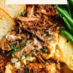 - Melt Cheese: Evenly top the shredded beef with freshly shredded Gruyere cheese. Return the pot to the oven at 400 degrees F until the cheese melts, approximately 5-7 minutes.