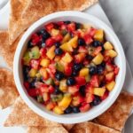A refreshing and vibrant fruit salsa paired with crispy homemade cinnamon chips, perfect for a light snack or a healthy dessert.