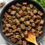 Tender steak bites seasoned with garlic, butter, and fresh herbs, perfect for a quick and flavorful weeknight dinner. This recipe is ready in just twenty minutes and can be easily adapted to be Paleo, Whole30, and dairy-free friendly.