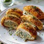 This Garlic Herb Stuffed Chicken recipe features tender chicken breasts filled with a creamy mixture of cream cheese, garlic, fresh herbs, and parmesan, then coated in flavorful seasoned panko breadcrumbs and baked to golden perfection. It’s an easy yet elegant main course perfect for dinner.