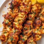 This recipe for Garlic Parmesan Chicken Skewers features tender boneless chicken thighs coated in a rich garlic parmesan butter, then air-fried to golden perfection. Infused with lemon zest and a hint of red pepper flakes, these skewers are packed with flavor and perfect for a quick, delicious meal.