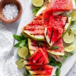- Plate and Garnish: Remove the grilled watermelon from the grill and transfer to a platter. Let cool for a few minutes before squeezing fresh lime juice over the wedges.