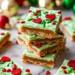 Grinch Christmas Crack is a festive and crunchy holiday treat made with saltine crackers coated in a buttery brown sugar toffee, topped with melted green candy melts and colorful sprinkles. Perfect for gift-giving or serving at holiday parties, this sweet and salty snack is easy to prepare and sure to delight all ages.