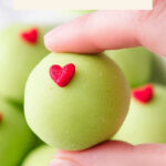 These Grinch Christmas Truffles are a festive and delicious holiday treat made with crushed Oreos, cream cheese, and coated in green-colored vanilla almond bark, decorated with red heart sprinkles. Perfect for holiday parties or gifting, they are easy to make and delightfully rich.