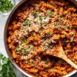 This Ground Beef Pasta is a hearty and flavorful one-pot meal featuring lean ground beef simmered with garlic, onions, crushed tomatoes, and Italian seasoning, combined with tender pasta and finished with parmesan cheese and optional creamy Greek yogurt for richness. Perfect for a comforting weeknight dinner.
