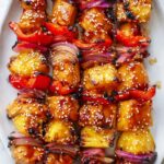 Easy and delicious Hawaiian teriyaki chicken kabobs featuring tender chicken, fresh pineapple, bell peppers, and red onions, marinated in a homemade teriyaki sauce and cooked to perfection by baking or grilling. Perfect for a flavorful main dish served with rice or salad.