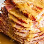 A delicious Honey Mustard Maple Glazed Ham recipe featuring a sweet and tangy glaze made from honey, pure maple syrup, Dijon mustard, and brown sugar, baked to perfection for a tender, flavorful holiday centerpiece.