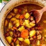 - For a more authentic preparation, layer the ingredients in the Dutch oven rather than mixing them before braising: start with bacon and sausage, then onions, potatoes, and carrots.